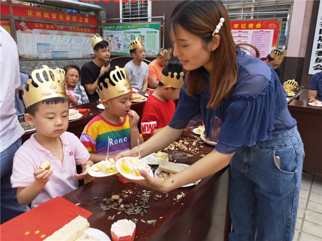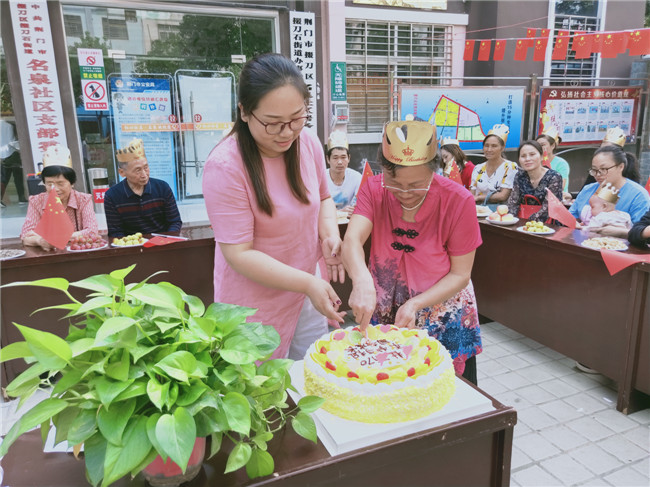 大家同唱《今天是你的生日》,把活动推向了高潮,社区工作人员为寿星们分发了生日蛋糕、水果和零食。