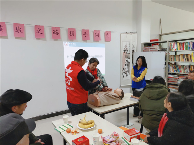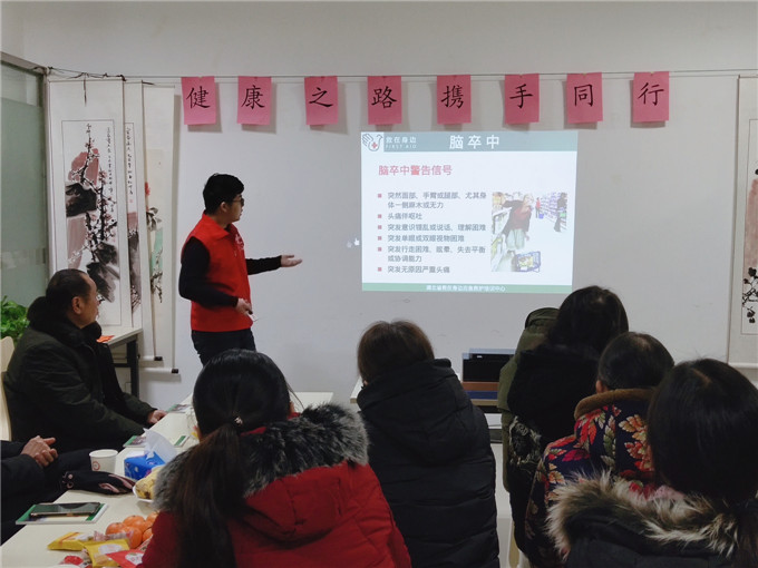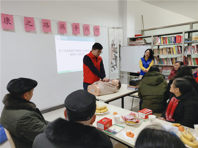 2019年12月26日,名泉社区依托蓝天社工,邀请荆门市120急救医疗救援中心为辖区老人上了一堂关于老年人常见疾病的防护和急救知识的讲座。首先在社工的带领下,老人们做了简单又有趣的暖身游戏,来自荆门市中医院急救科的刘医生就开始了今天的讲座内容。刘医生首先分析了现代老年人常见的晕厥、昏迷、中风、哮喘、心肌梗死等突发疾病,然后向大家详细介绍每一种突发疾病的急救防护措施。刘医生用人体道具着重演示了心肺复苏术的过程,并讲解了具体细节,然后邀请老人们现场操作演示以检验他们实际掌握情况,及时纠正错误姿势,并对正确操作演示的老人们给予肯定和表扬。经过学习和互动演练,参与活动的老人们掌握了几种常见突发疾病的基本急救防护措施,所有活动参与者都表示收益匪浅,一致认为应急救护知识和技能很实用,对自己和家人都有好处。