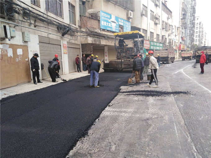 沿渠路北端路面刷黑施工中