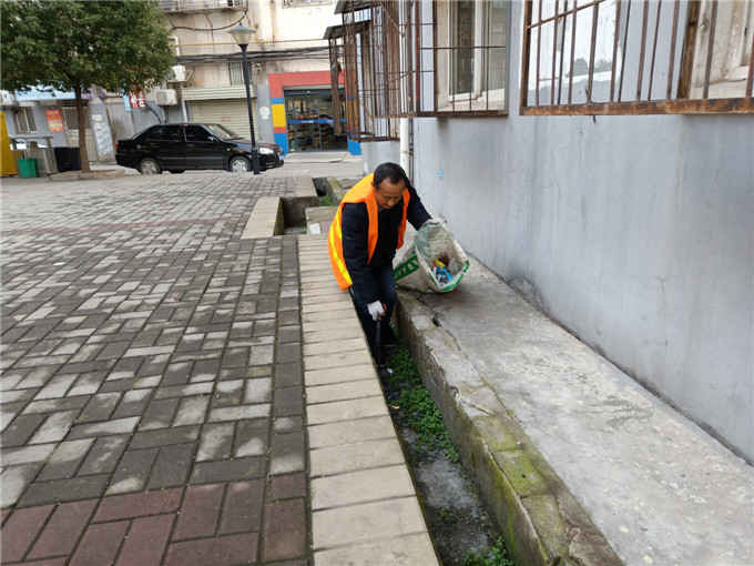 捡拾建设广场白色垃圾