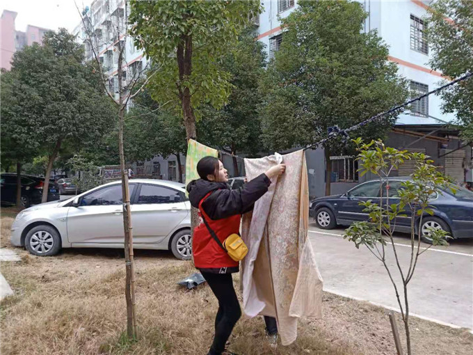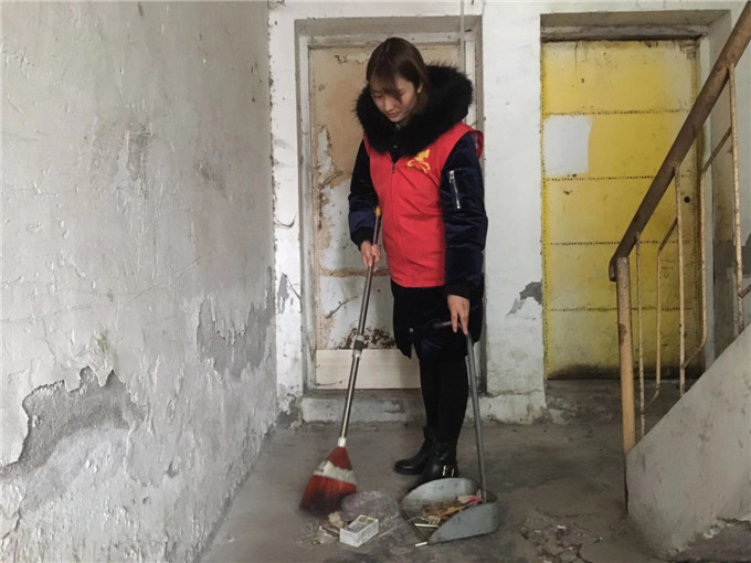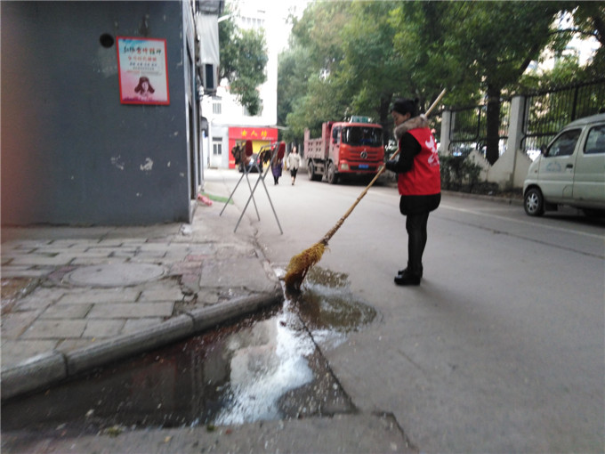 她们身穿红马甲,头戴小红帽走进辖区大街小巷,为居民义务清扫楼道、清除牛皮癣、整理共享单车、劝导流动摊贩......,让社区居民居住环境井然有序。