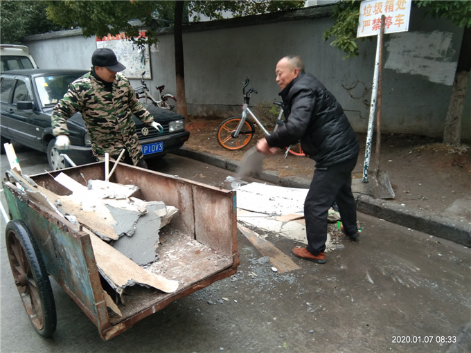 近日多为雨雪低温天气,但名泉社区志愿者带给居民浓浓的暖意,他们冒着严寒在辖区巡查,及时清理拖运居民春节清扫整理出的杂物、疏通维修下水道、劝导流动摊贩、为高龄独居老人清扫积雪,方便居民出行。