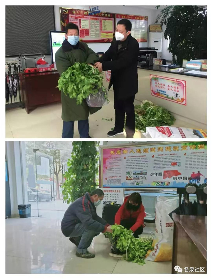 今天和往常一样,名泉社区全体工作人员依旧坚守在工作岗位上,继续加大疫情防控的宣传力度,对武汉返荆人员进行体温跟踪,为辖区困难户送新鲜蔬菜……