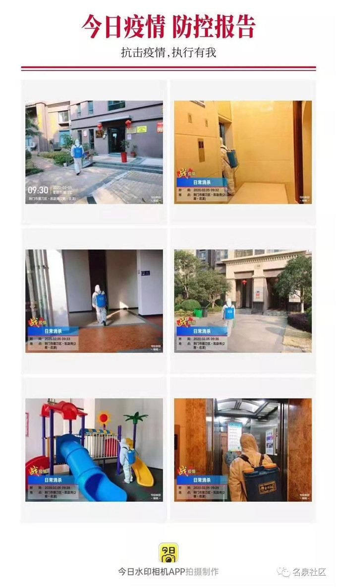 凯旋城小区严格控制小区人口出入,对出入人员进行体温测量和登记,同时做好小区公共区域的全面消毒。