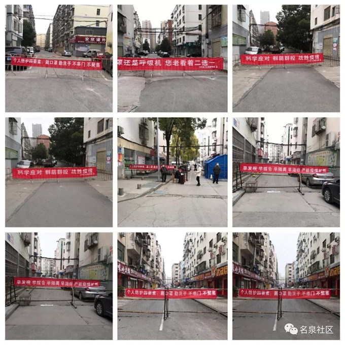 在新的防疫方案中,名泉社区将辖区的三无小区划分为四个区域,由社区工作人员和志愿者临时充当物管,分别对这四个区域进行封闭式管理,全天候24小时值守。小区所有人员必须凭通行证、身份证,测体温登记后才能进出。截止10日,名泉社区新增宣传条幅46条,在三无小区外筑起“铜墙铁壁”,确保疫情防控工作全覆盖、不遗漏、无死角,守好群众出行“安全门”。