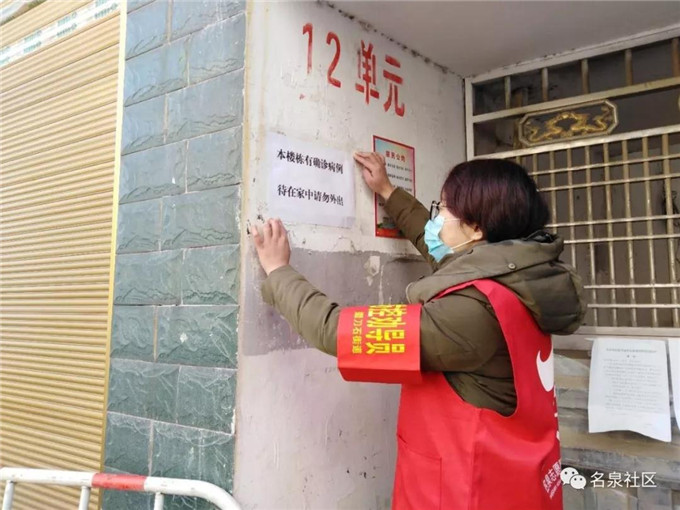 今天和往常一样,名泉社区全体工作人员依旧坚守在工作岗位上,继续加大疫情防控的宣传力度,加大出入关口的巡查力度……