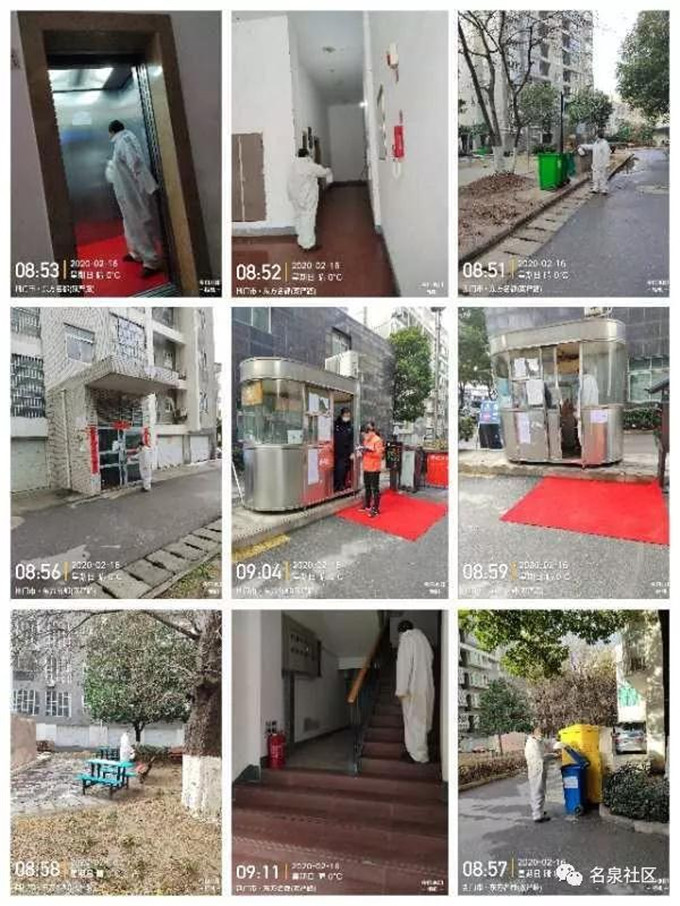 同时,各单位、自管会、物业公司积极加入防疫工作的队伍中,在辖区内劝导居民做好个人防护及劝导居民不要室外活动,同时做好居民点的全面消毒工作。
