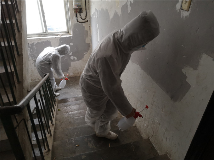 区退役军人事务局为小区楼栋消毒
