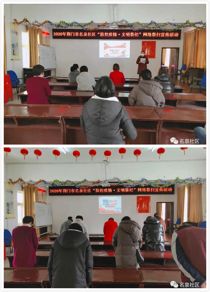 4月1日,名泉社区全体工作人员、下沉干部、党员、居民代表等32人在四楼会议室,开展主题为“疫情防控·文明祭祀”的网络祭奠先烈的活动。