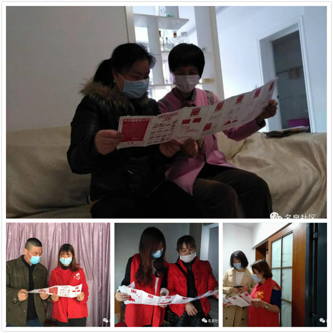 活动现场,居民们饶有兴致地参观了知识展板,社区普法志愿者现场就“如何提高国家安全意识,保障国家长治久安”主题,给大家进行安全知识讲解。除此之外,社区还积极动员党员、团员、辖区志愿者、网格员的力量,走街串巷,入户宣传,开展“送法上门”活动,将国家安全宣传材料及普法宣传手册送到居民手中,让更多的人有依法防范和抵制危害国家安全行为的意识。