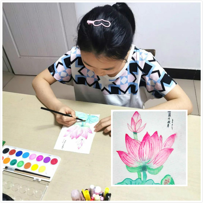 本次活动在“线上”开展,画室的老师为青少年们讲解如何画莲花,同时以莲与“廉”之间的联系教导青少年何为廉、为何廉、如何廉,告诉青少年从小养成勤俭节约的好习惯。青少年们听了网课后,拿起画笔,画出自己心中的一朵朵“廉”花。