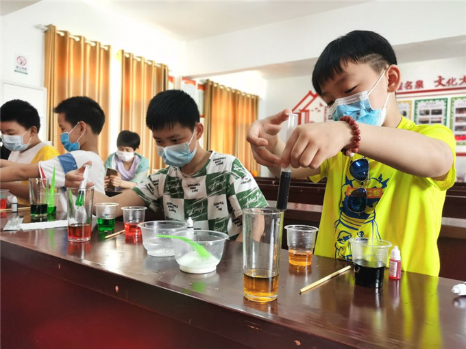 为丰富社区青少年课余生活,5月31日,名泉社区科普小实验课堂开讲,科普小实验让青少年探究彩虹色水分层的原因及原理,培养青少年探索科学奥秘的兴趣。