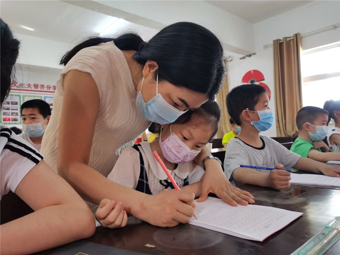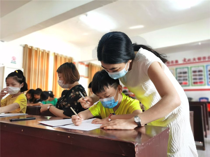 课堂中,老师从最基本的书写姿势、握笔、运笔开始教学,经过老师的指导,小朋友各个挺直了小身板端坐在书桌前,大家目不转睛地聆听老师的讲解,仔细观察老师的亲笔示范,然后自己一字一行临摹,劲头十足。进行反复练习书写的同时,老师还不断向小朋友们讲解汉字书写的方法和技巧,并当场纠正在书写过程中容易出现的一些错误。