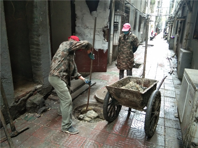 名泉小区自管会疏通堵塞下水管网