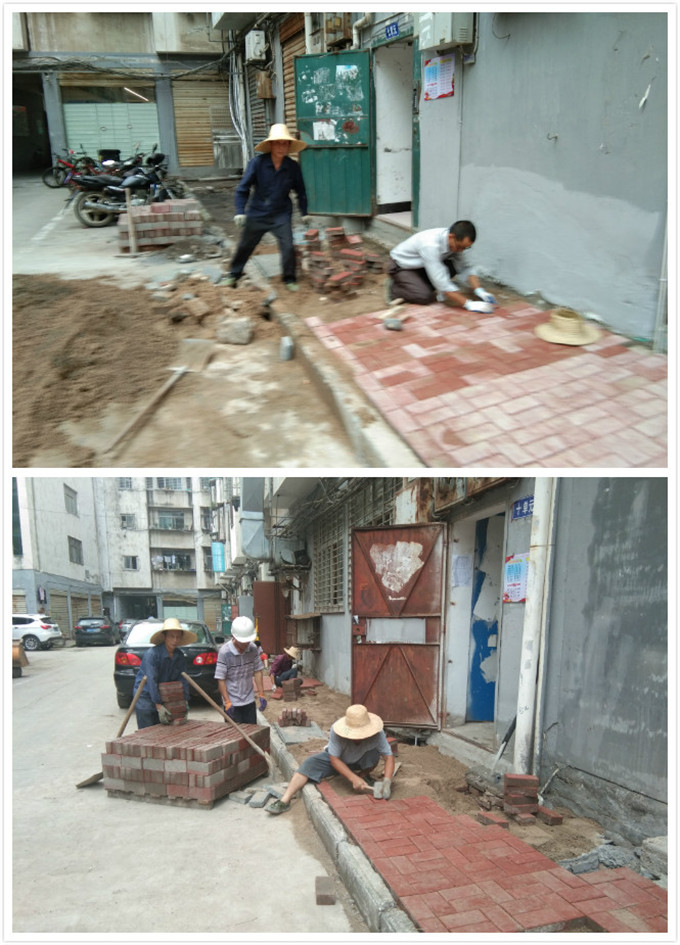 名泉小区东北湾下水管网改造升级铺设步板砖