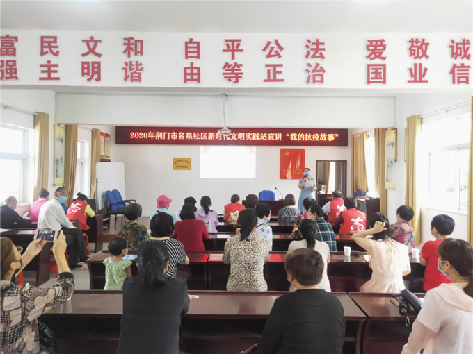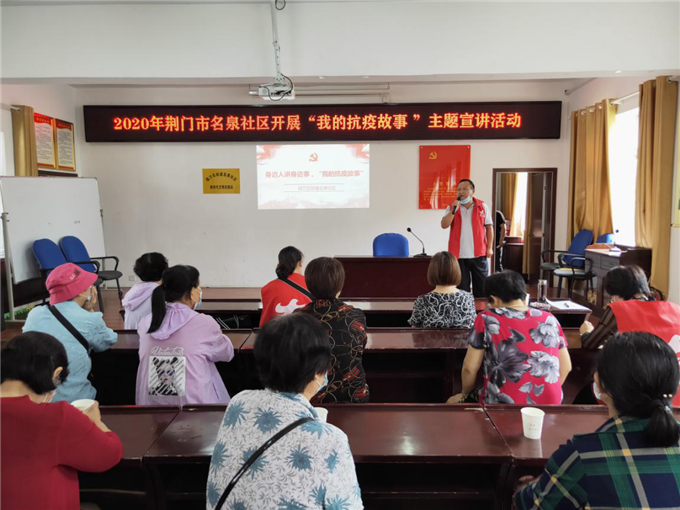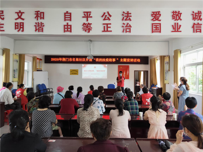 6月19日荆门高新区·掇刀区掇刀石街道名泉社区举办主题为“我的抗疫故事”宣讲活动,辖区物业公司、党员居民代表68人参加了此次活动。