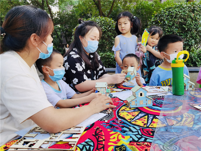 7月6日下午,名泉社区童梦之家组织二十多名儿童和家长,在凯旋湾小区开展了一场益智3D积木拼图活动。