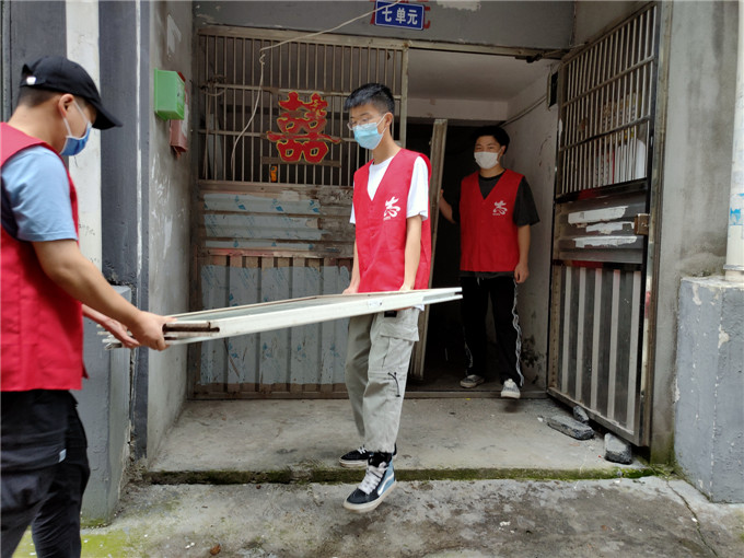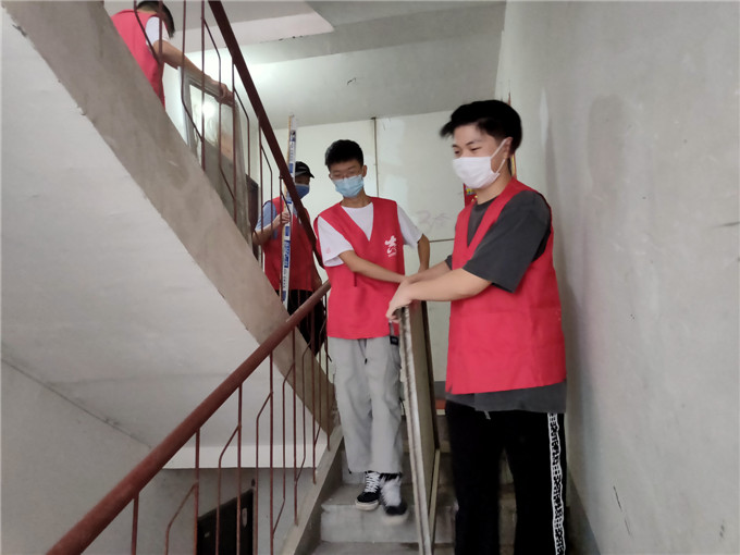6名应征青年在三无小区对楼道内的废弃家具、僵尸车、杂物等堆积物进行地毯式清理,拿着工具认真清除路边杂草和墙上牛皮癣,并向居民发放创建全国文明城市宣传手册,引导群众提升文明意识,培养文明习惯。
