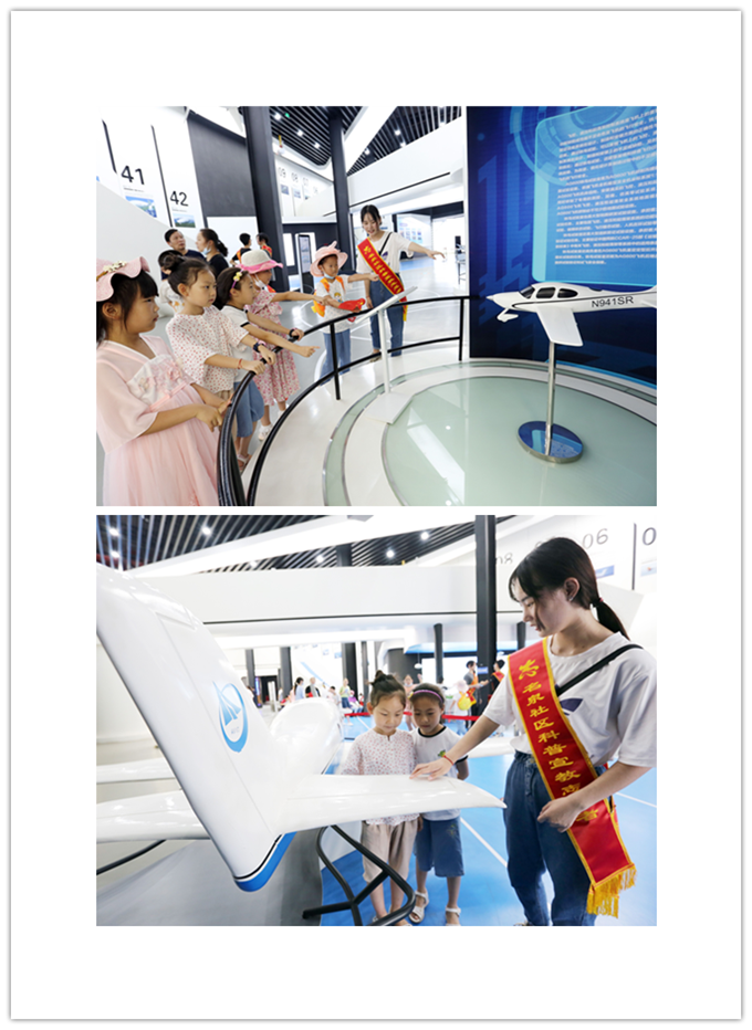 最后一站爱飞客文化展示中心,青少年们参观了文化展示中心的五大固定展区和静态飞机展示区,了解通用航空的发展历程和科普知识。