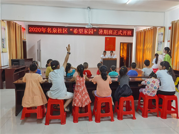名泉社区“希望家园”线下暑期班同步开班,16名困难儿童在大学在志愿者的陪伴下开展课业辅导、安全自护、素质拓展、心理辅导等活动课程,切实增强困难儿童的法治意识,引导广大青少年健康成长。