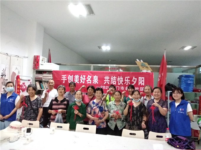 8月26日,名泉社区联合蓝天社工开展“手创美好名泉 共结美好夕阳”的编织中国结的活动,中国结是一种中国特有的手工编织工艺品,它身上所显示的情致与智慧正是中华古老文明中的一个侧面,现代中国结代表着团结幸福平安。为丰富辖区老年朋友们业余文化生活,通过社工们两小时的耐心的指导和帮助下,居民们编织成了一个个色彩鲜艳、造型精巧的中国结,小小的中国结,代表着对生活美好的期盼与祝福。大家看着自己的作品都开心不已,感受到成功的喜悦和民族传统文化的魅力,也增进了居民之间的友情。