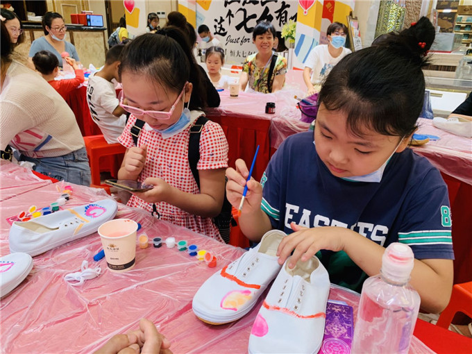 小朋友总喜欢到处乱涂乱画,墙上、地上、衣服上,到处都是自己留下的稚嫩笔迹,这是珍贵的童年记忆。如今,这些所谓的“乱涂乱画”却渐渐成为了一股潮流,甚至被称为手绘涂鸦风。一双帆布鞋、一支画笔、一盒颜料,加上无边的想象力,会出现怎样的化学反应呢?8月22日,名泉社区童梦之家带领20对亲子家庭,开展了手绘涂鸦小白鞋的活动。