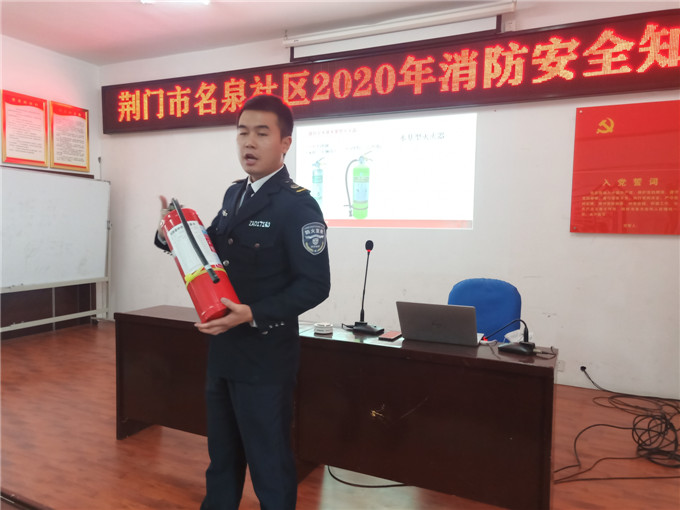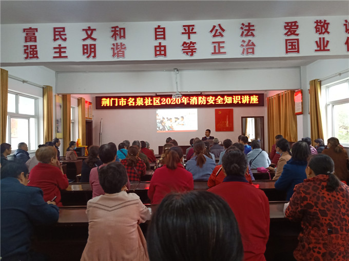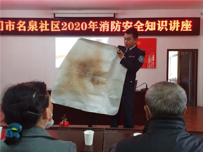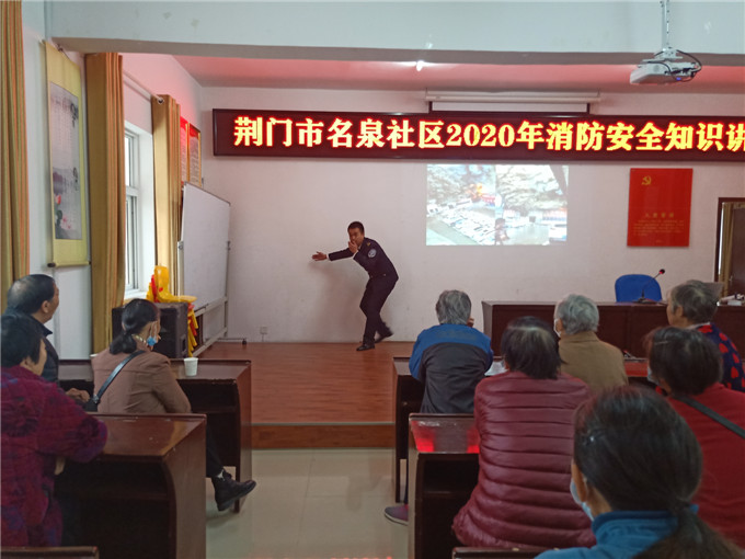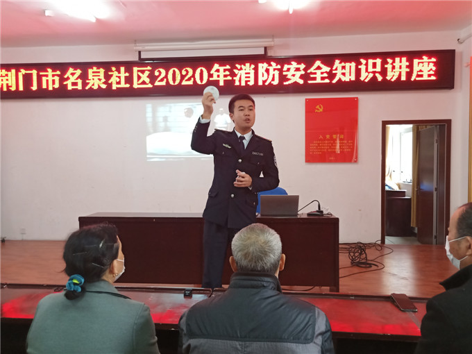 为提高居民的消防安全知识与应急自救能力,预防并减少火灾事故的发生。10月13日上午,名泉社区邀请湖北省安居消防知识宣传中心荆门分中心消防宣传员为居民群众上了一堂易懂、易记、实用性强的消防安全知识讲座。