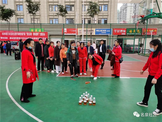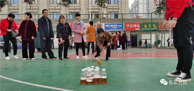 比赛开始前,名泉社区为辖区老年朋友们送上节日的祝福,蓝天社工为参赛居民讲解了比赛规则和注意事项。此次趣味运动会共设六个比赛项目,分别是趣味保龄球、圈地夺宝、趣味推球、套圈、蒙眼击鼓、巧运杯子和绕口令。下面让我们欣赏一下大家的表现吧~