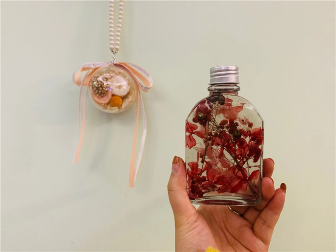 大家将作品一个个摆在一起,就像一个个立体的植物花朵绘本,一边在瓶中飘摇荡漾,一边绽放着属于花儿的美丽,宛如贮存了一片植物的小星球。