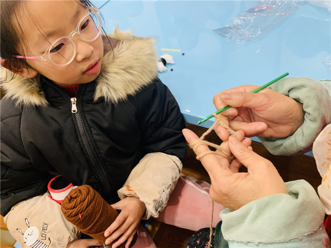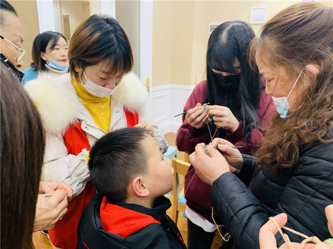 汪奶奶是第二次来参加活动了,“名泉社区童梦之家举办的亲子手工活动太好了,织手套能锻炼手眼协调能力,而且和年轻人、孩子们在一起觉得自己也变年轻了,一点也不觉得累”。在汪奶奶的帮助下,小组里的两位妈妈也学会了织手套。