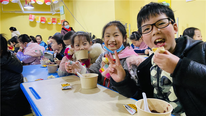 在新的一年即将到来之际,为弘扬中华民族传统文化,营造良好的节日氛围,1月17日,名泉社区童梦之家给孩子们准备了香糯甜美的腊八粥和的奶黄包,粥捧在手里,喝到了嘴里,同时也暖到了孩子们的心里。一碗香甜可口、热气腾腾的腊八粥,让孩子们迅速驱除了身上的寒冷,缓解了一天下来学习的疲惫,大家有说有笑,其乐融融,感受到了彼此之间传递的温暖。