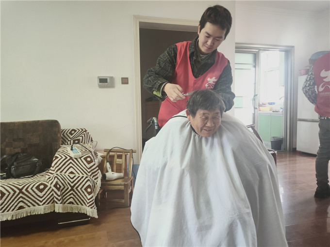 “真是太感谢你们了,每年3月都记得上门来给我剪头发,剪完头,我感觉清爽多了。”杜奶奶感激的说道。杜奶奶下肢瘫痪,常年做轮椅,无法正常行走,对她来说,平常出门都非常困难,更别说出门剪头发了。“多谢社区组织这样有意义的活动,也多谢志愿者亲自上门为我老伴剪头发。”杜奶奶的老伴高兴的说道。
