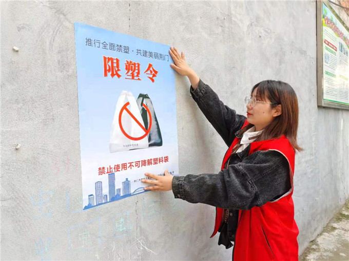 名泉社区组织志愿者在居民楼栋、便民服务栏等聚集地张贴限塑令300余张,同时对社区商家开展入户宣传,做到全面参与,人人知晓。