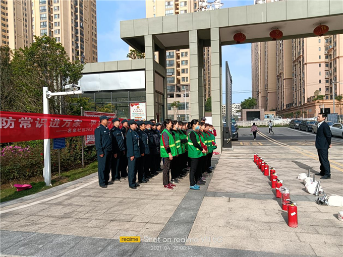 4月22日上午,名泉社区联合荆门市东泰物业管理有限公司深入海纳佳城小区开展消防安全知识宣传活动,进一步普及消防安全知识,提高小区消防安全管理和防御火灾能力。