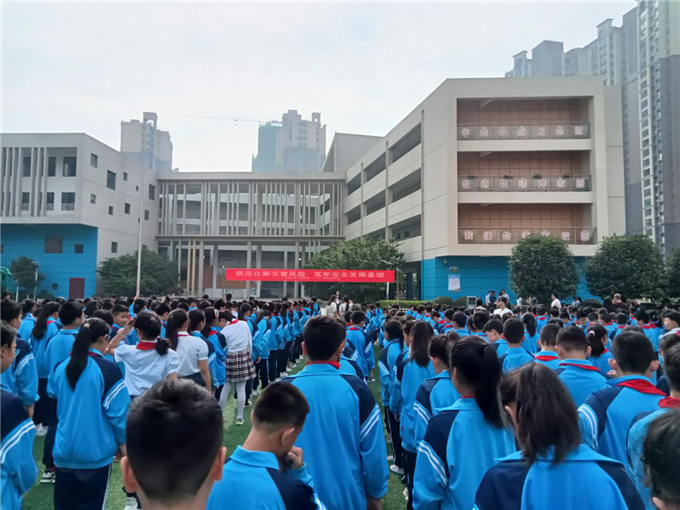 市民防办地震台讲师罗梦娇为学生带来了一堂生动有趣的“应急课”,为学校捐赠防灾减灾、应急自救等各类科普读物500本。全校教职工和两千多名学生参与演练活动。