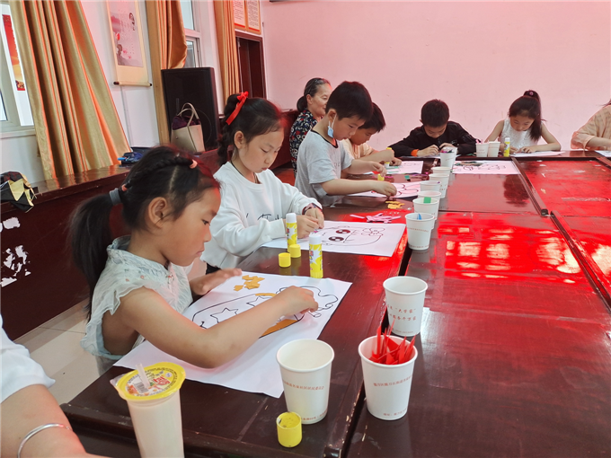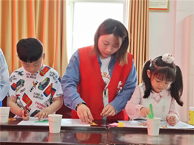 马赛克创意贴画活动正式开始,16名小朋友们蹦蹦跳跳的进入社区文化活动中心4楼,个个热情洋溢,信心十足,期待志愿者老师赶紧讲解绘画要求和发画板、笔、胶水马赛克贴片等材料。在领取了相关绘画材料之后,便在志愿者老师耐心、细心的指导下制作着专属于自己的“艺术品”。不一会儿,一个普普通通的画板上却变作拥有各种色彩和花纹的图片。画纸上的空白被天真烂漫的孩子们一丝丝填满,他们的想象是那么的精彩和无尽,在斑斓的色彩中淋漓尽现。