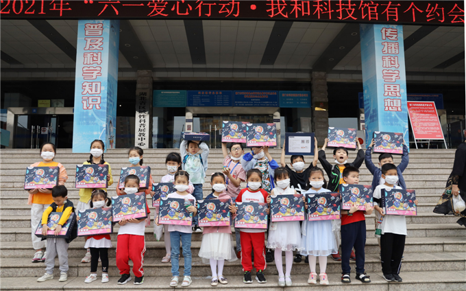 孩子们在科技馆门前合影