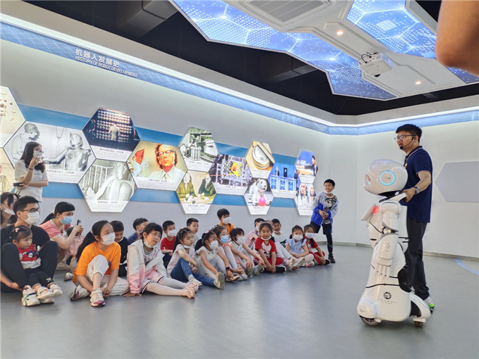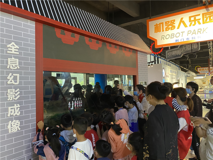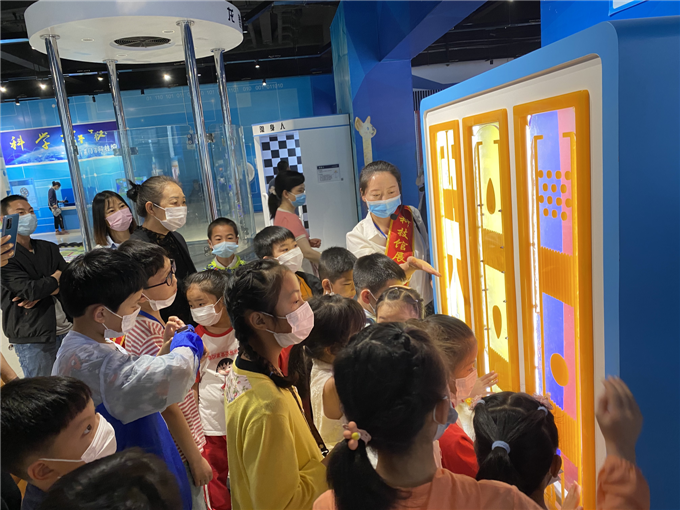 活动中,孩子们首先科技馆志愿者的带领下参观“致敬新时代 礼赞科学家”、社会主义核心价值观、荆门市道德模范等展板,接着进入到科技馆展厅参观机器人乐园、科学探秘、机械力学等三大展区,随后乘车来到湖北金色阳光创客工场,参观各类飞机模型、机器人以及各类科技展品,在参观学习的过程中,孩子们的热情高涨,积极互动,对展品展项所揭示的科学原理表现出浓厚的兴趣,并不时提出疑问,科普志愿者耐心细致对孩子们的问题进行一一解答。