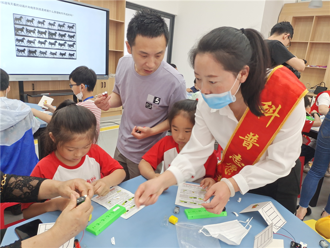 最后,科普志愿者还为孩子们上了一堂魔幻动漫科普公益课堂,孩子们动手制作了探究实验-“笼中鸟”。本次活动,科技馆还为每位孩子赠送“六一爱心”科学实验包。通过参观、学习、参与制作等,让孩子们在边玩边学中,体验到 科技的力量,在心里种下科技、进步的种子。