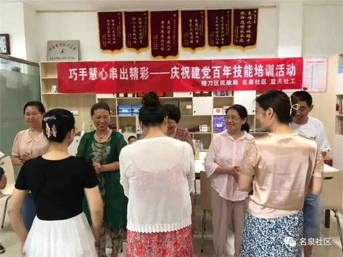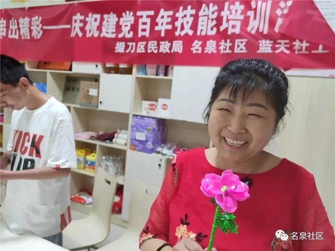 恰逢建党100周年,为庆祝党的百岁生日,6月29日上午,名泉社区携手蓝天社工,为辖区居民举办了一场热闹非凡的手工串珠活动。