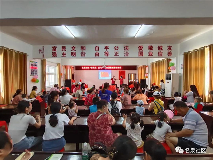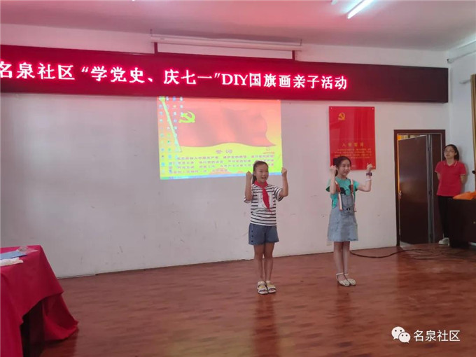 “红星闪闪放光彩,红星灿灿暖胸怀……”孩子和家长们手举小国旗,用热情洋溢的歌声,将整个活动现场氛围变得活跃起来。志愿者们将孩子们认识党旗、国旗和党的知识等,让孩子对中国共产党有了初步的认识。两名来自名泉小学的学生还上台为大家表演了一支《童心向党》舞蹈,获得大家阵阵掌声。