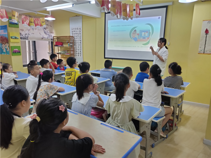 活动当天,荆门社区网党支部的宣讲队员结合同学们的年龄特点,通过视频、互动问答、儿歌等形式,讲解了有关“网络安全”的小常识,告诫未成年人不擅自使用家长的电脑手机,用手机玩游戏看视频时不随意点击链接、输入付款密码,避免上当受骗。同时,通过情景模拟,引导同学们认识过度手机上网的危害,提出要学会鉴别网上信息,严格控制上网时间,不沉溺虚拟空间,不随意添加陌生网友,不单独约见网友,不浏览不良信息,做个文明、守法的小网民。