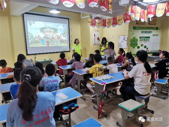 临近中午,市生态局、市环境保护志愿者协会里的哥哥姐姐们过来给孩子们上了一堂公益课。孩子们认真听讲,回答问题的时候十分积极。快要结束之时,志愿者姐姐们带着大家,拍了一张大合照。孩子们高兴极了