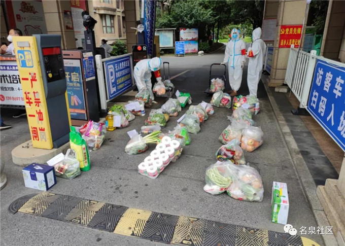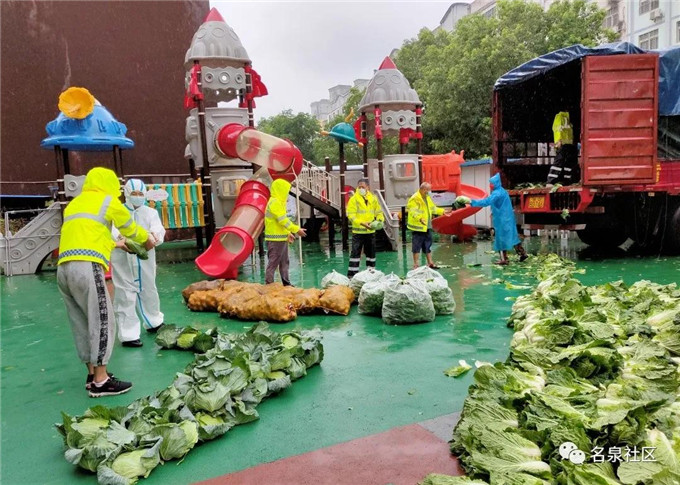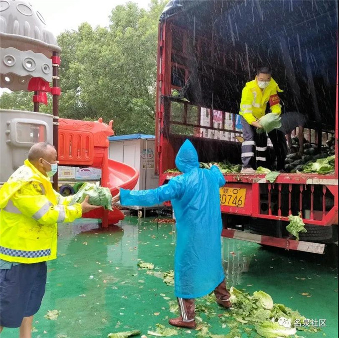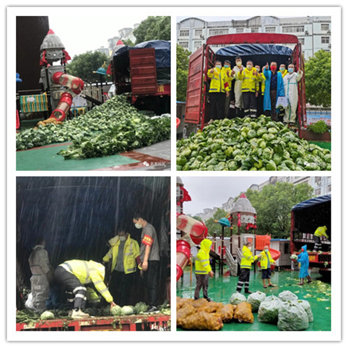 恩施利川捐赠给荆门红十字会后,荆门红十字会第一时间将爱心蔬菜,分配给名泉、白庙两个社区。名泉社区的志愿者们,在大雨中传递着利川人民的爱心。他们默默的顶着风雨,为正在隔离的居民们,提供着生活保障。他们都是“荆门英雄”。