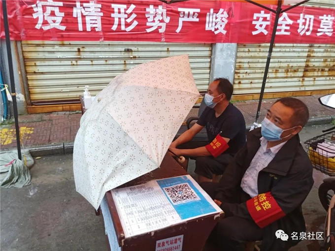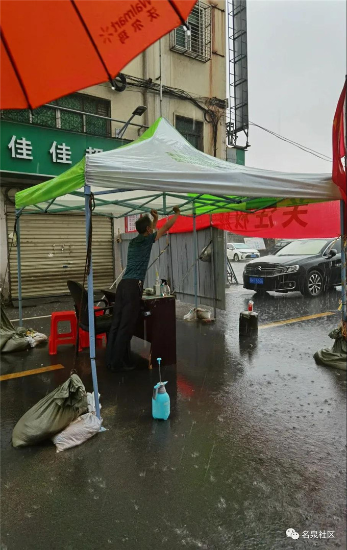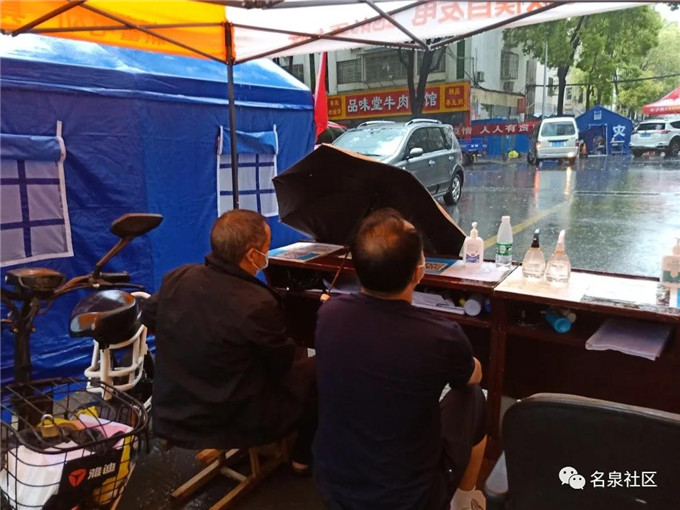 风雨之中,没有人躲避,手臂上的红袖章,是身份,是初心,是责任。没有人不怕病毒,也没有人喜欢面对风雨。因为他们是下沉名泉社区的党员干部,心中有信仰,脚下有力量。他们甘愿在风雨中为名泉居民守护好“第一道防线”。
