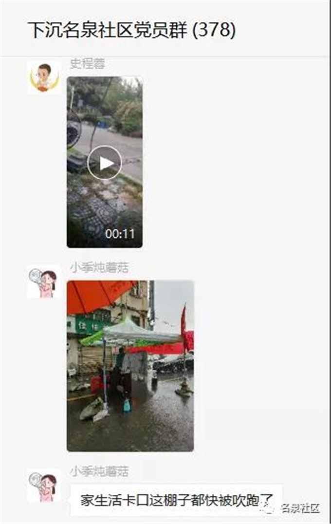 8月20日,下午15:35分,一场酣畅淋漓的大雨,为名泉社区这几天的高温带来许些凉意,大家在家里听着雨声又能宅的更舒服一些了。但是,大雨的猝不及防,给防疫志愿者们带来了不小难题。这是下沉名泉社区党员群传来的几张照片。