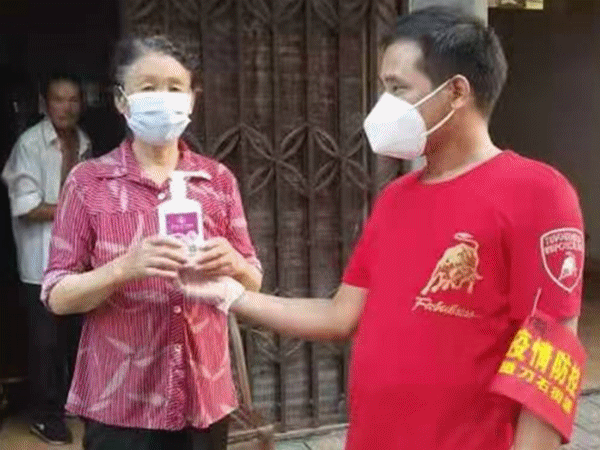 一瓶小小的洗手液,传递着社区工作人员对居民的关心。