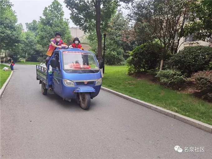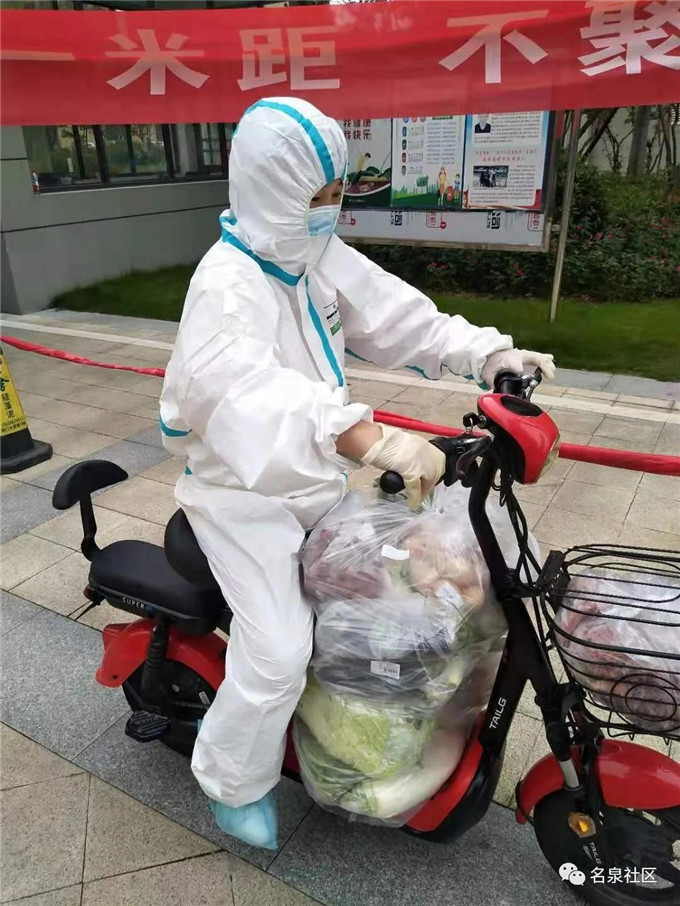 一辆载着居民生活物资的超市货车在小区门口缓缓停下,一群穿着防护服的志愿者们有序上前,将货车上居民采购的物资卸货、按楼栋分类摆放好。随后,志愿者们驾驶着堆满蔬菜、水果等生活物资的电动摩托车,向小区内不同楼栋驶去。这是荆门高新区·掇刀区掇刀石街道名泉社区凯旋城小区志愿服务队每天的工作场景。