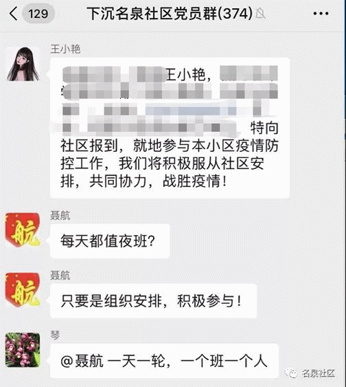 当招募志愿者的消息已经发布,名泉社区的居民们,踊跃报名参加,纷纷在群里要求社区工作人员们尽快为他们安排志愿服务工作。在这场战斗中,他们充分发挥了呼必应,召必来的精神。很多人都是全天候待命,只要有需要,他们立马就会挺身而出。