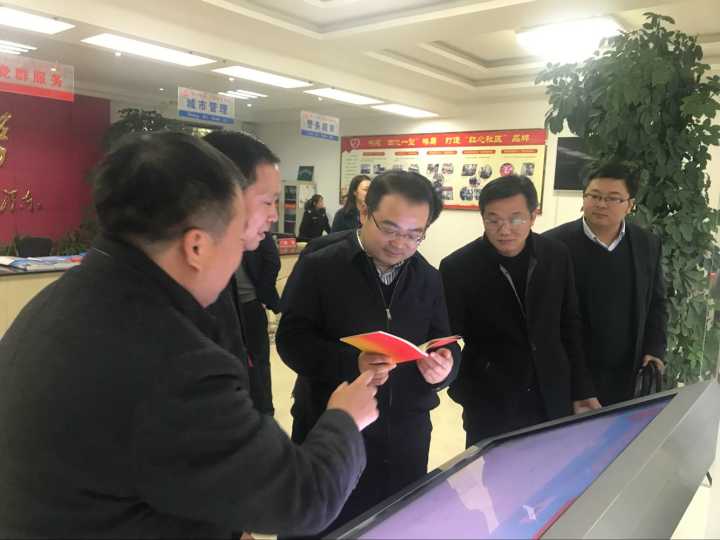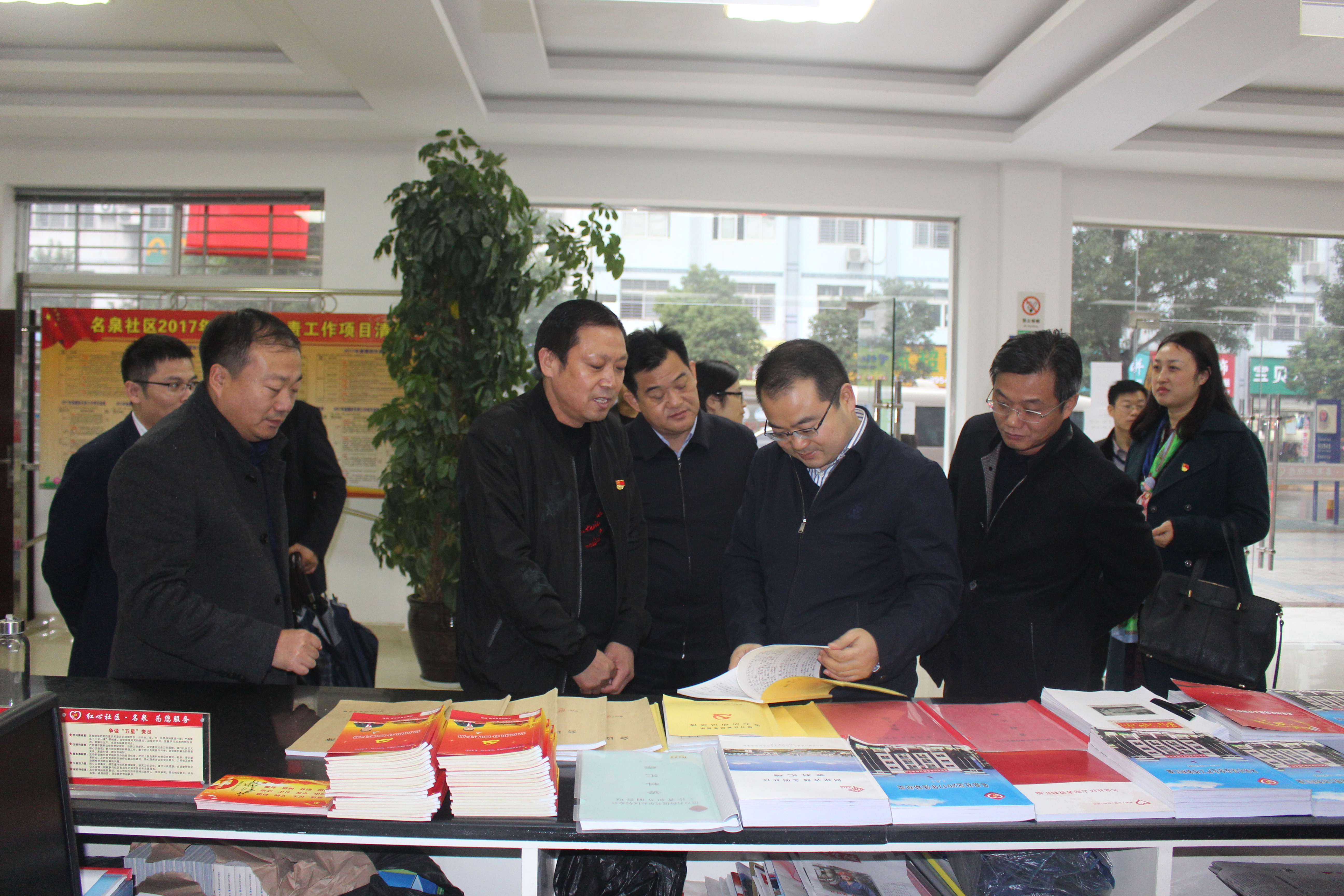 11月16日,荆门市委常委、组织部部长高义勇,市委党代表办兰刚一行到名泉社区调研创建“红心社区”为民服务、网格员队伍建设等工作情况,通过现场查阅资料,听取汇报,实地查看社区直管党员积分制管理宣传栏及日更新的党员积分平台,对我社区工作情况给予充分肯定。高新区工委、掇刀区委书记伍应彪、掇刀区委组织部部长谢小平,掇刀石街办党委书记何鹏林等陪同。